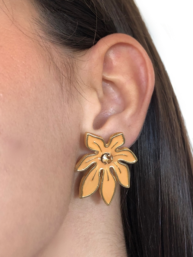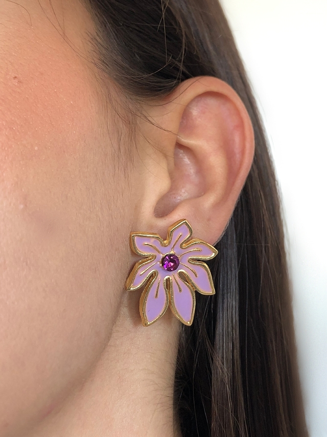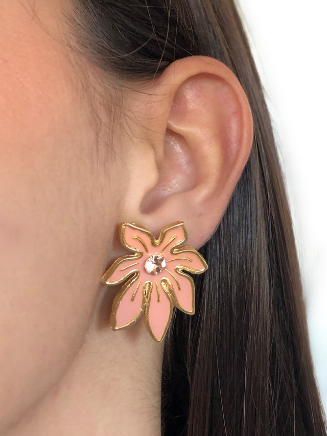 Brinco Flor Esmaltada com Strass Central