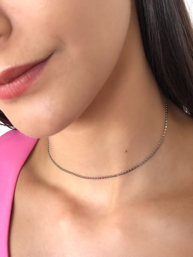 -A Choker mede 30 cm de comprimento e 12,2 cm de extensor com fecho lagosta. A Choker mede ao todo 42,2 cm de comprimento.