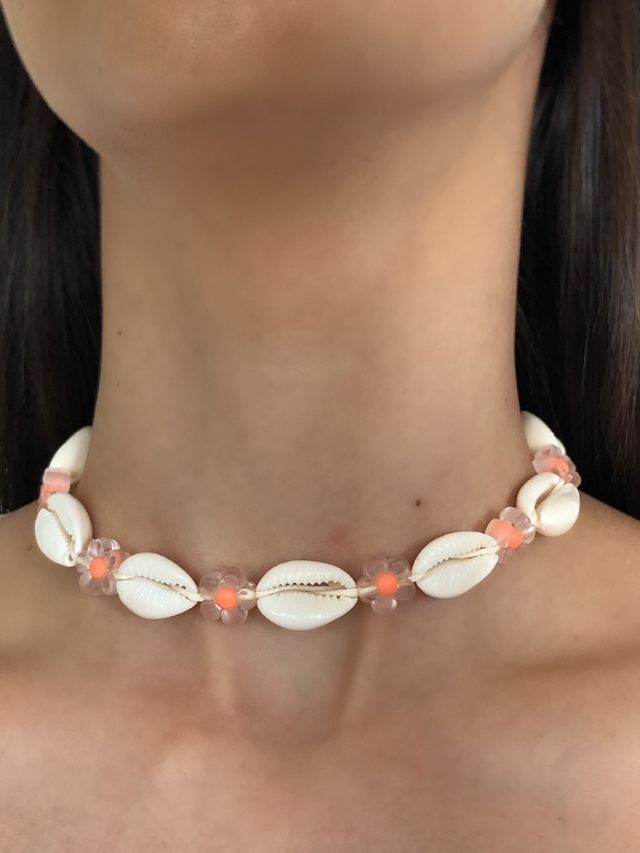 Choker Búzios Naturais + Miçangas de Florzinha