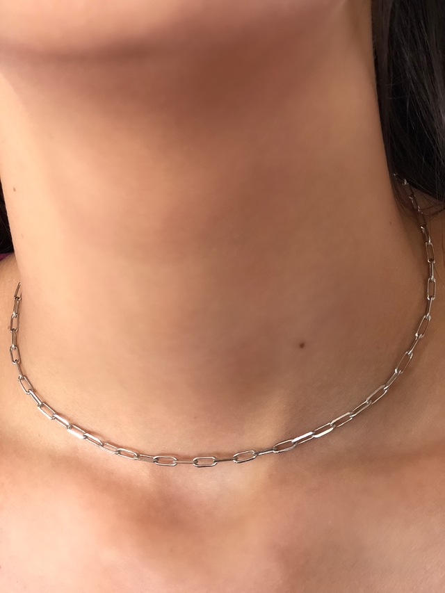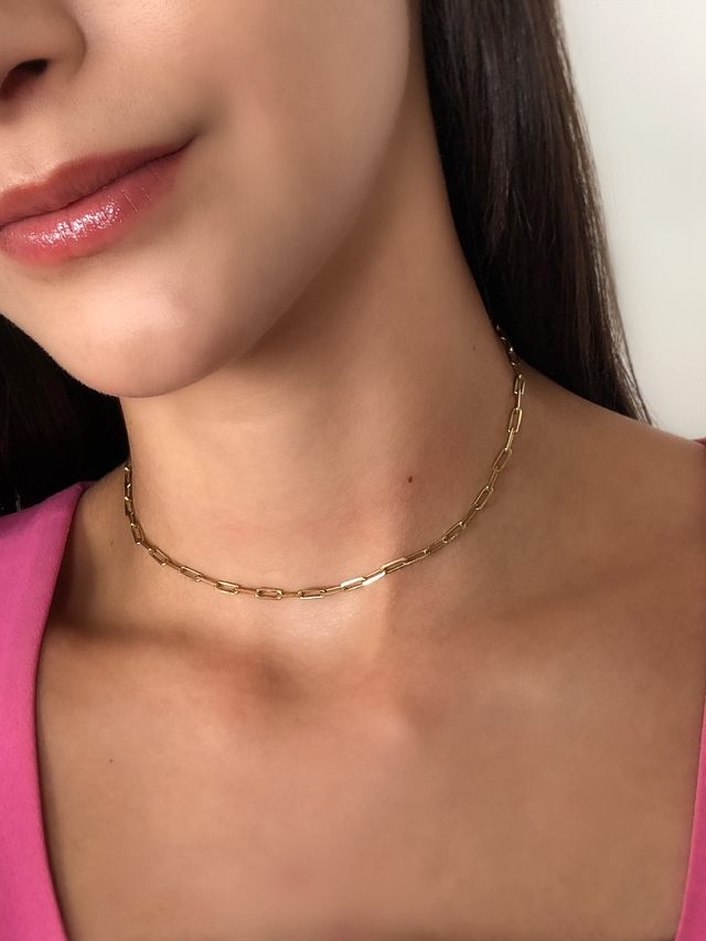 -A Choker mede 30 cm de comprimento e 11,4 cm de extensor com fecho lagosta. A Choker mede ao todo 44,4 cm de comprimento.