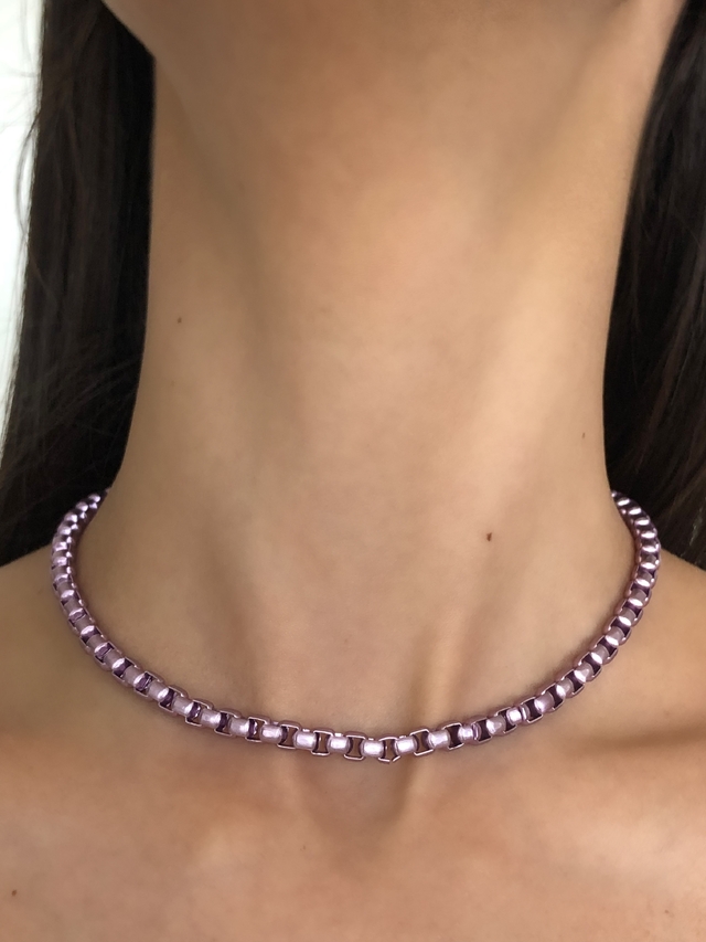 -A Choker mede 35,5 cm de comprimento e 9,5 cm de extensor com fecho lagosta . A Choker mede 45 cm de comprimento.