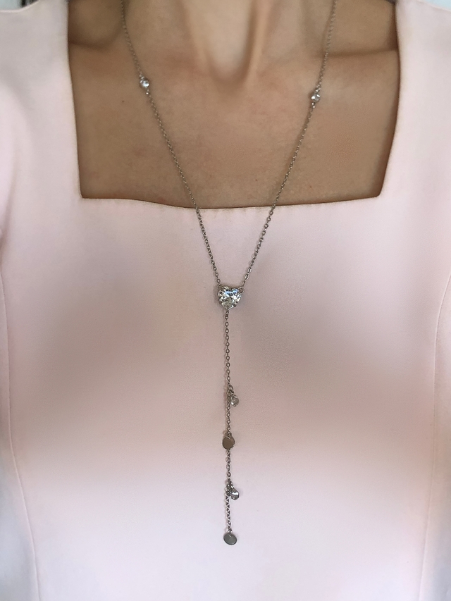 Colar Gravatinha com Zircônia de Coração + Medalhas