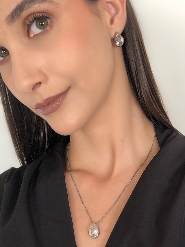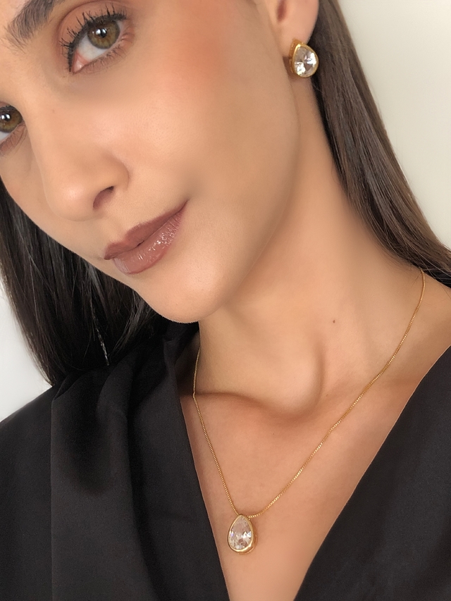 Conjunto Colar e Brinco Zircônia Gota com Borda