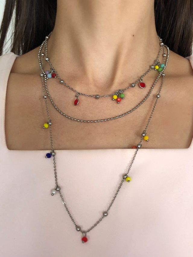Mix de Colar Esferinhas + Miçangas Penduradas